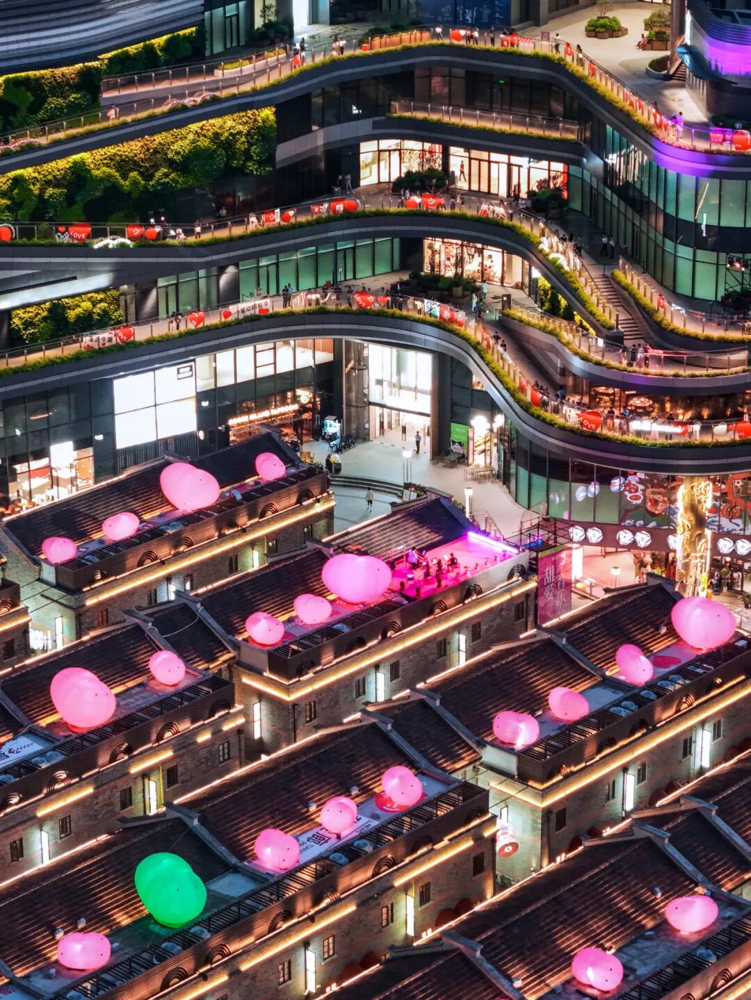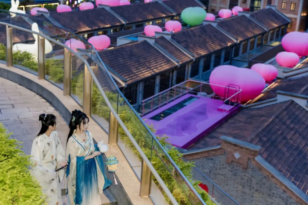 弄堂屋顶上的玉兔偶遇地点:滨港商业中心·今潮8弄是哪里的弄堂屋顶这么漂亮?惊现一片粉色爱心海洋还有几只玉兔悄悄爬上屋顶原来是今潮8弄!