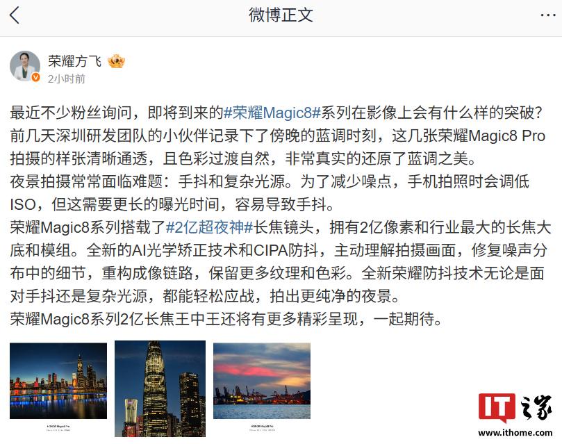 IT之家 10 月 9 日消息,首席影像工程师罗巍今日分享了 Magic8 Pro 手机在王力宏演唱会的拍摄样张,并直言“不需要啥增距镜”金御优配,暗指新机在演唱会场景下的长焦拍摄能力有所突破。