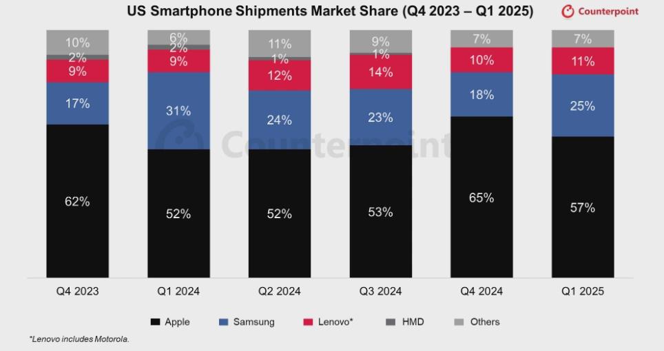 但在雷科技看来,苹果在单一产品线上覆盖如此宽的价格带和产品布局,其实是不得不为的「市场现实」。在全球高端市场,iPhone 的份额几乎已经触顶:以美国为例,iPhone 的市场占有率长期稳定在 60% 左右;而在中国,随着华为、小米等品牌持续发力高端,苹果的增长空间被进一步压缩,小米17 Pro Max 紧急极为火爆的销量就是最好的证明。